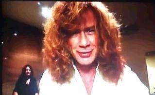 en la pantalla gigante en el que Mustaine hablaba de cerca a la cámara,